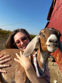 L is the oldest sister: she creates sculptures from clay, hama bead decor, knitting, crochet and glass work. She takes care of the goats: from milking to trimming their hooves. She enjoys baking chocolate chip cookies, candies and bread.